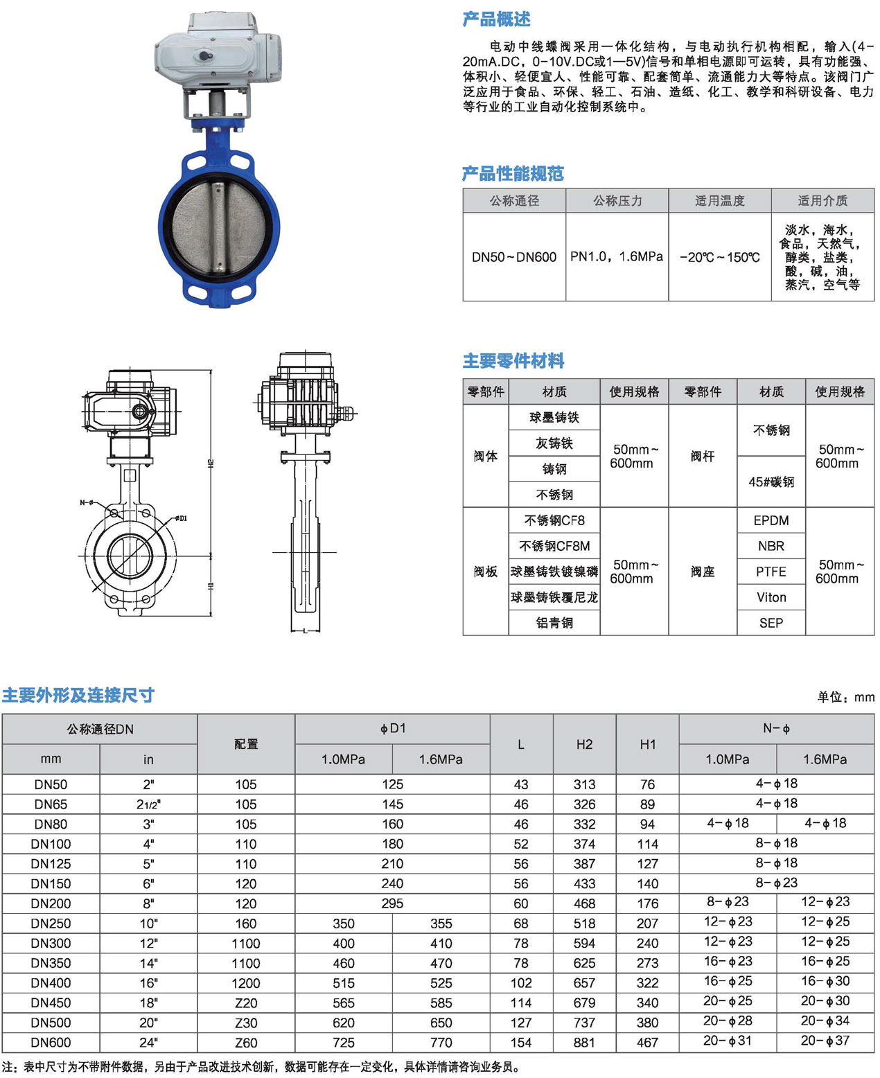 口徑:DN50~DN600mm