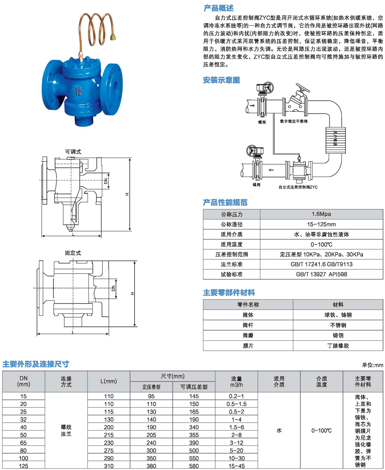 口徑:DN15~DN125mm