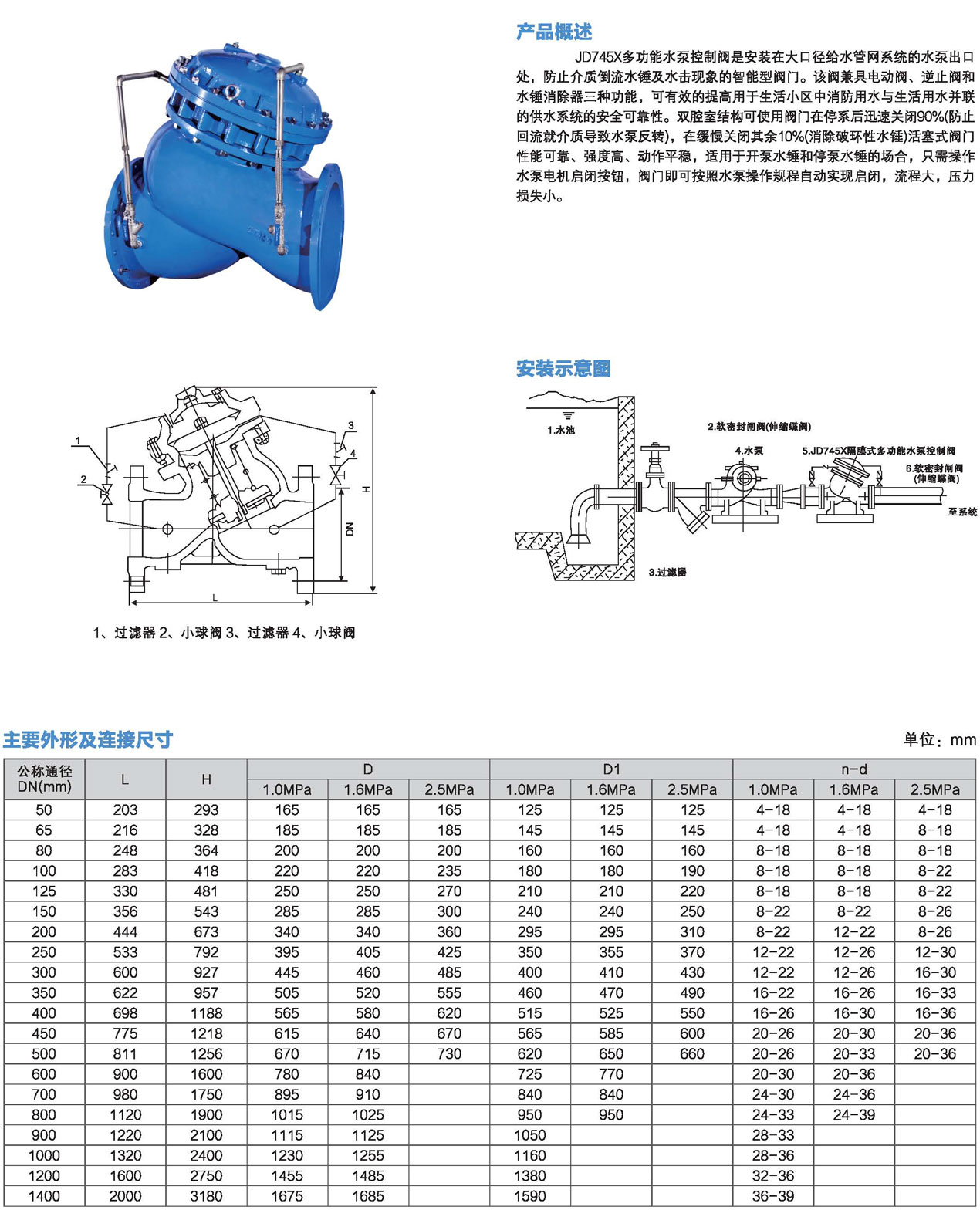 口徑:DN20~DN500mm