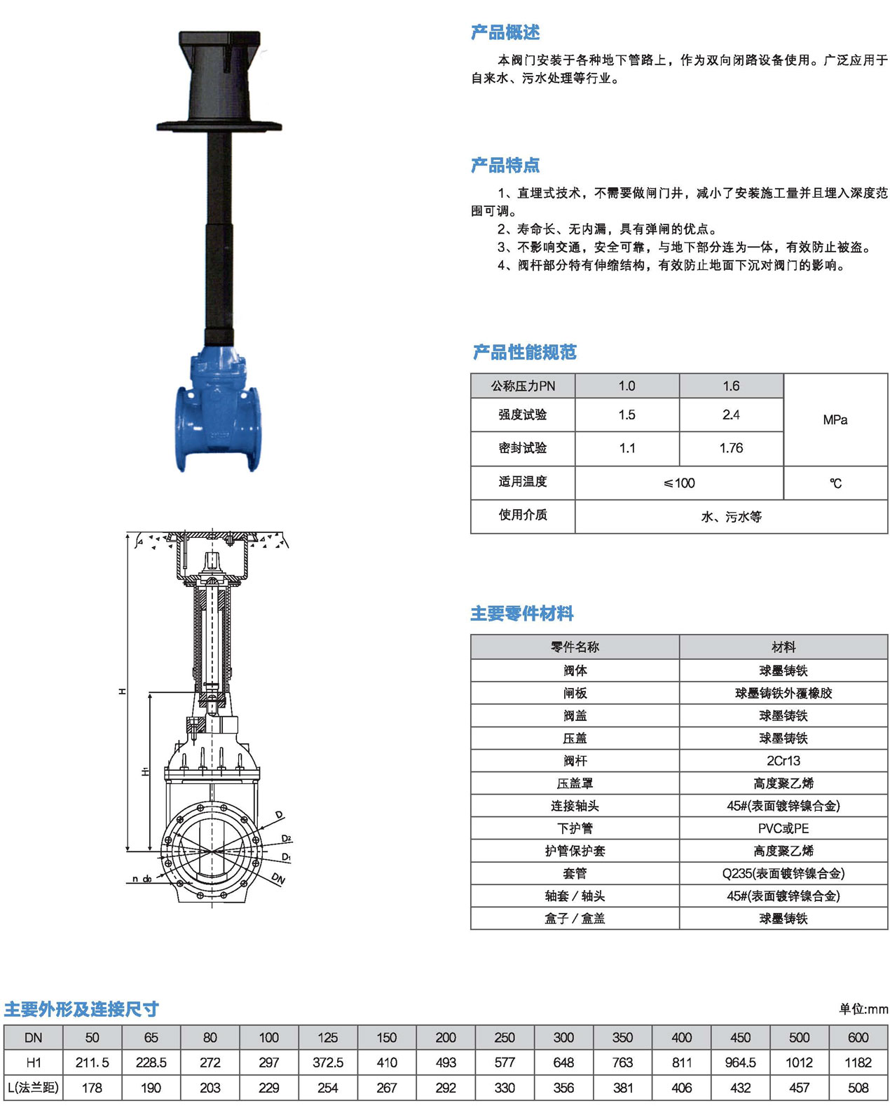 口徑:DN50~DN600mm