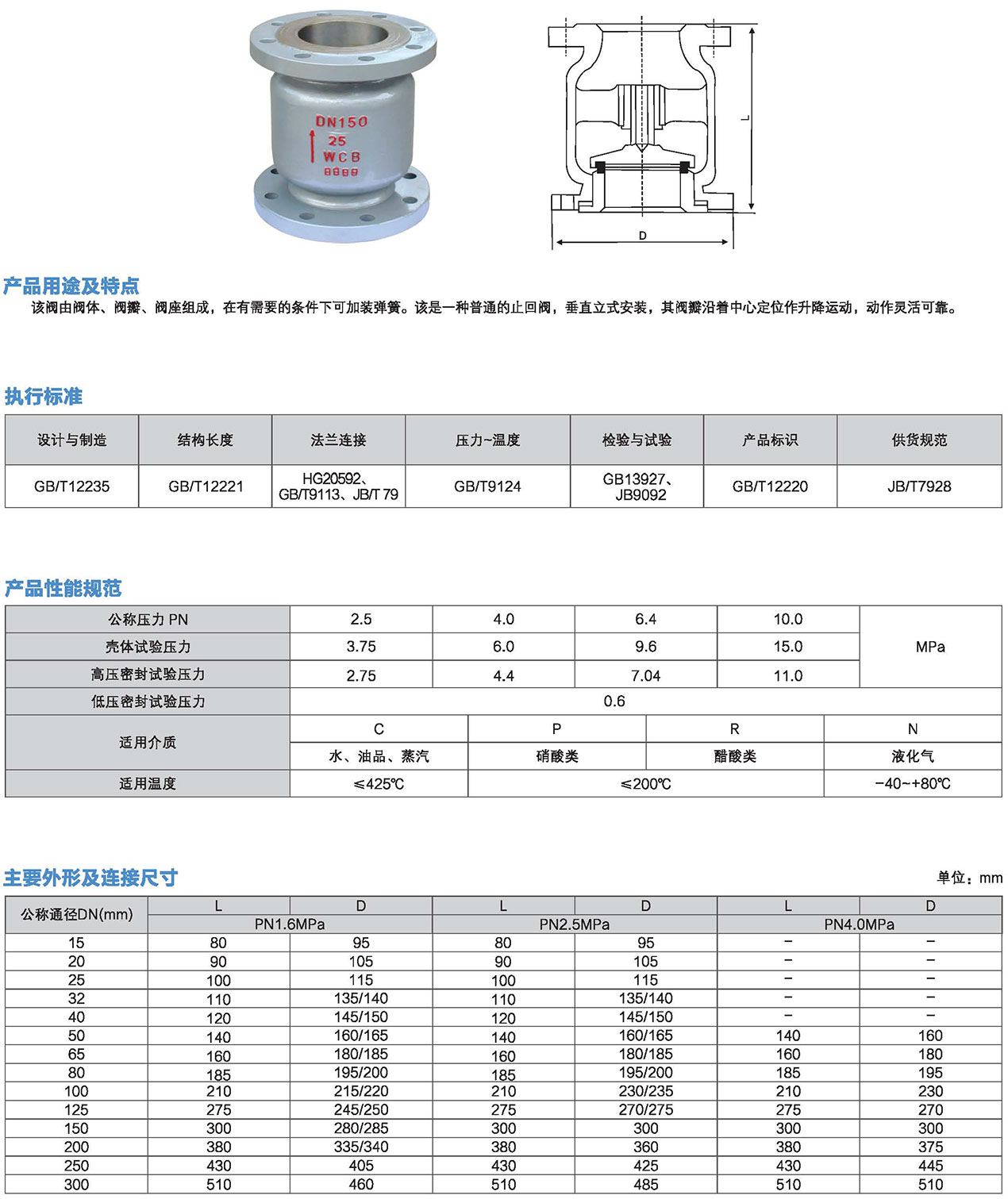 公稱壓力:2.5、4.0、6.4、10.0MPa